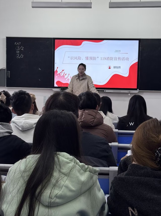 活动二:深化主题班会载体,筑牢消防安全防线。辅导员充分发挥主题班会育人主阵地作用,通过剖析真实案例、播放警示教育片、解析校园常见火灾隐患等形式,系统普及火灾预防、初期火灾扑救、火场逃生自救等关键知识与技能,切实提升学生消防安全素养与应急处置能力。