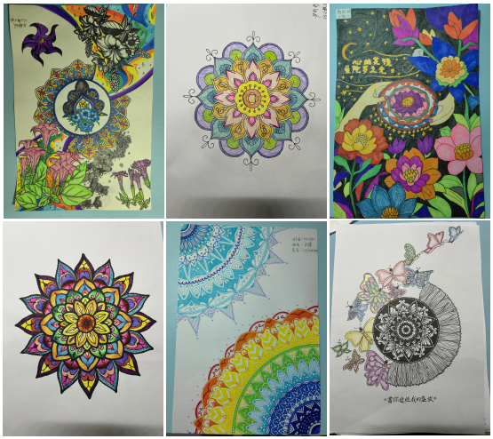 本次活动以曼陀罗艺术为载体,引导学生在色彩与线条的交织中,触摸心灵温度,传递积极能量。参赛者通过自由创作或命题设计,将抽象的情感具象化为同心圆结构画面,既是对自我意识的深度觉察,亦是对生命秩序的诗意重构。赛事采用线上模式,突破空间限制,让更多学子参与其中。