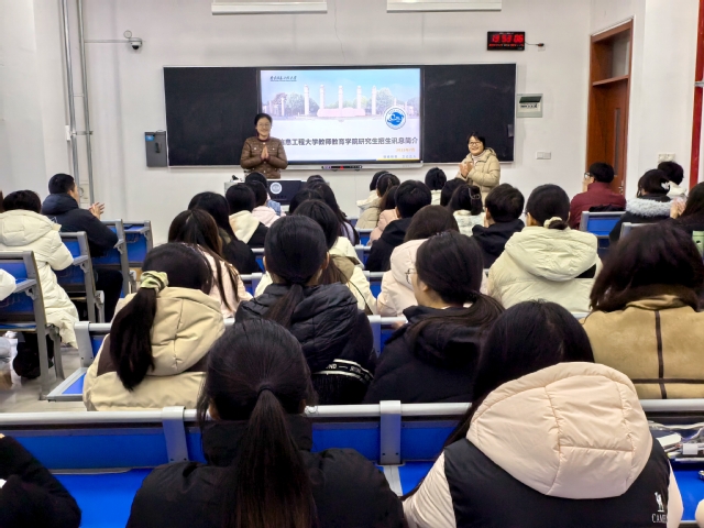 为加强校际教育合作,搭建研究生招生与人才培养交流平台,帮助师范类学子明晰考研方向,2025年12月10日,南京信息工程大学教师教育学院徐梅丹博士应邀莅临我校william威廉中文,开展研究生招生专场宣讲会。william威廉中文60余名有志报考该校的学生参与活动,现场交流氛围热烈。