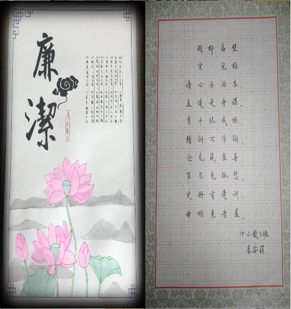 结合学院专业特点积极开展廉洁文化活动。教育科学学院以“植廉于心、践廉于行”为主题,面向教育科学学院全体学生,结合自身专业特点,开展内容丰富、喜闻乐见的校园廉洁文化活动,充分发挥廉政文化教育人、感染人、引导人的作用,鼓励学生以书法、绘画、海报设计等形式展现。学生通过众多主题鲜明、内涵深刻、寓教于美的作品倡廉洁、扬正气,营造了浓厚的反腐倡廉氛围。其中廉政海报内容引人深思,激励师生以廉政为魂、勤政为本,勿失其本心;廉政绘画作品生动形象、内涵丰富;廉政书法作品笔法有力,正气浩然;其他类型的作品也都寓意深远,蕴含着对廉洁的体验和感悟。