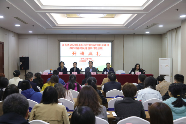 2020年11月4日,江苏省2020年本科院校教师师德师风建设研修训班在中汇国际会议中心开班,南通大学教授周建忠、WilliamHill中文副校长、党委常委李苏北、人事处处长李玲、继续教育学院院长唐翔、教育科学学院(教师教育学院)院长马衍、教育科学学院(教师教育学院)副院长周红参加了开班典礼,参训学员为江苏省内各高校教师、行政管理人员50名。李苏北副校长致欢迎词,明确了师德师风建设的基石作用,分享了WilliamHill中文近年来取得的成绩,学校正昂首阔步,向徐州大学迈进;马衍院长介绍了本次培训的课程安排与特色,对参与培训的学员提出期望和要求。典礼由周红副院长主持。本次培训以加强高校党委教师工作部门的建设与发展、增强高校教师践行师德师风的自觉性与主动性为目的,培训持续三天,包括专家讲座与实践考察两种形式。李玲、耿中华、马衍分别主持专家讲座。