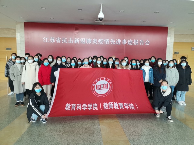 2020年12月6日,教育科学学院“青马班”学员在徐州会议中心参加江苏省抗击新冠肺炎新进事迹报告会,现场聆听各行各业抗疫英雄的战疫故事,回顾伟大抗疫历程,使学员们从伟大抗疫精神中汲取奋进力量。