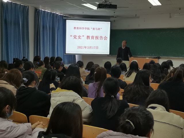 为贯彻落实党史学习教育工作部署,扎实做好党史学习教育,3月17日下午,教育科学学院邀请马克思主义学院周海航副院长为“青马班”学员作“中国共产党奋斗历程及经验启示”的党史教育报告会。