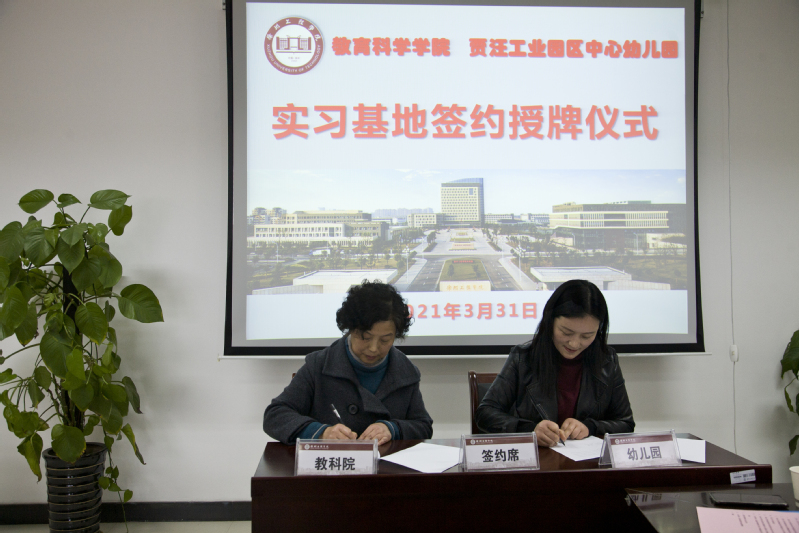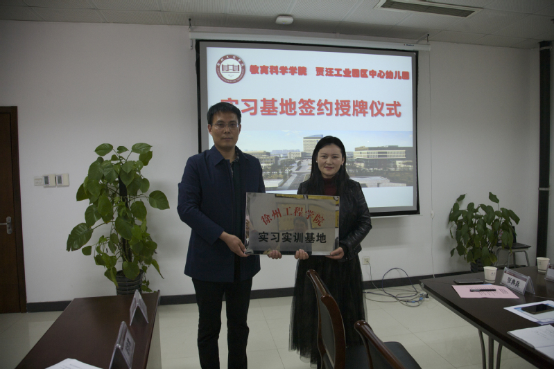 随后,学院党委书记耿中华向贾汪区工业园区中心幼儿园实习基地授牌,院长马衍与贾汪区工业园区中心校签订实习基地协议。与会人员还就如何深化实习基地建设及双方合作等方面进行了深度交流。