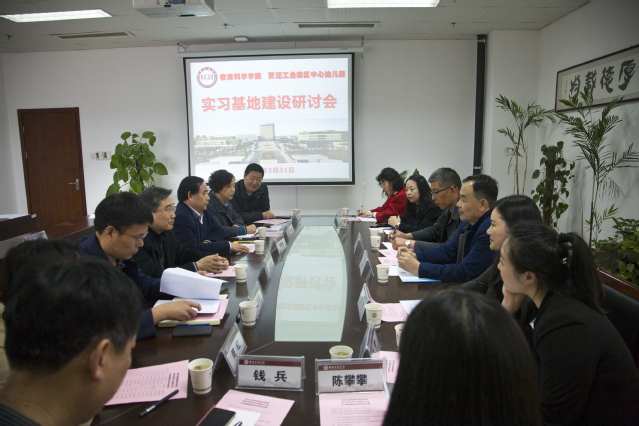 2021年3月31日,教育科学学院与贾汪区工业园区幼儿园实习基地建设研讨会会议在敬业楼601会议室召开。徐州市贾汪区工业园区中心校的王训波校长、徐州市贾汪区工业园中心幼儿园夏梅园长一行受邀出席会议,我校教务处处长邵晓根教授、校审计处处长孙建永教授、我院院长马衍教授、院党委书记耿中华教授、副院长张典兵教授、副院长周红副教授、学前教育专业负责人钱兵教授参会。会议由副院长张典兵主持。