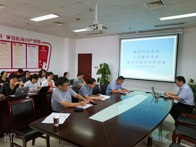 2020年7月14日上午9:30,教育科学学院小学教育专业课程教学大纲修订研讨会在敬业楼601会议室举行,教育科学学院副院长张典兵教授、小学教育专业负责人王坤教授和参与小学教育专业各门教学大纲修订的老师们以及教务科老师参加了此次会议。