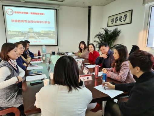 为更好地了解学前教育行业发展状况和岗位需求情况,切实推进人才培养质量,对接专业认证要求,11月17日下午,学前教育专业在敬业楼601室召开2021年学前教育专业岗位需求分析会,徐州市花语路幼儿园、云龙区教育实验幼儿园、华城幼儿园等7家合作单位和学前教育专业教师代表参加会议。