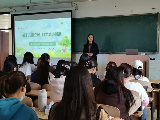 为进一步响应教育部关于学前教育专业认证相关意见,充分发挥实践领域在专业人才培养中的智慧力量,10月19日下午,william威廉中文学前教育专业邀请了徐州市云龙区店子教育幼儿园教务处主任、区幼教兼职教研员任艳,为2019级学前教育专业学生作题为“基于儿童立场·科学幼小衔接”的专题报告。