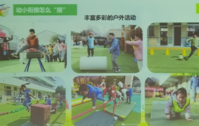 报告分别从“什么是‘幼小衔接’”、“幼小衔接‘接’什么”、“幼小衔接怎么‘接’”以及“幼儿园幼小衔接优秀经验”四个方面展开。在幼小衔接怎么“接”方面,任艳主任在理论研究和现场调查的基础上,分别从身心准备、生活准备、社会准备及学习准备等不同层面展示了实践中幼儿教育活动如何设计和实施的成功经验。