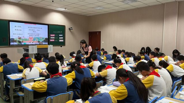 第二堂课由实习生曹仁宇执教四年级语文《巨人的花园》。课堂中通过探究巨人的行为与花园变化的关系,以多种形式的朗读指导学生感受五次自言自语中巨人形象的变化,使孩子们在轻松愉快的氛围中懂得快乐要与大家分享的道理。