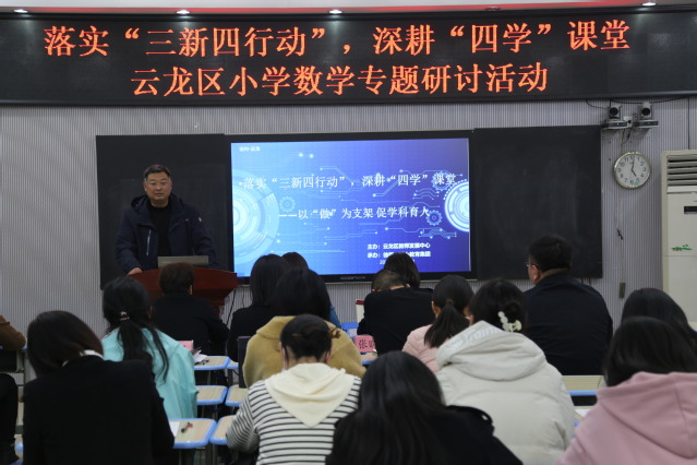 11月21日,我院朱黎生老师参加了由云龙区教师发展中心主办,徐师一附小教育集团承办的云龙区“落实‘双新’课改,深耕‘四学’课堂”专题研讨活动。研讨活动包含两节公开课,分别是《认识圆柱》和《钉子板上的多边形》,集团校三位老师汇报了所在学校活动开展情况。研讨活动聚焦于“做数学”,研究数学实验、数学活动在数学课堂中的实践路径,研究综合实践课的教学范式。最后,市小学数学教研员李贺老师结合课例阐述了“做数学”的内涵与路径,朱黎生老师从数学观、数学认知心理方面阐述了对“做数学”的认识。本次活动为我院参与基础教育实践提供了提供了平台,有力的推动了校地合作。