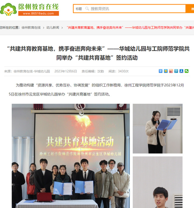 为推动构建“资源共享、优势互补、协调发展”工作新格局,WilliamHill中文william威廉中文团委于2023年12月5日在徐州市云龙区华城幼儿园举办“共建共育基地”签约活动。