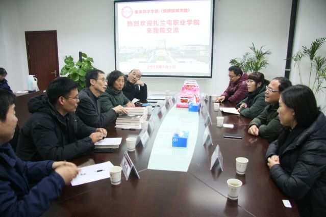近日,扎兰屯职业学院教育科学系主任陈培强等一行五人来访我院。副校长蒋留生会见代表团,教育科学学院书记耿中华、院长马衍等院领导和相关负责人参加活动。