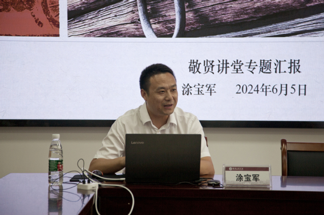 6月5日下午,我院举办第一期“敬贤讲堂”,我校党委常委、组织部部长涂宝军受邀在敬贤楼409室为我院教师代表做题为“共轭之道:社科研究方法新探”的讲座,本次讲堂由马衍院长主持。