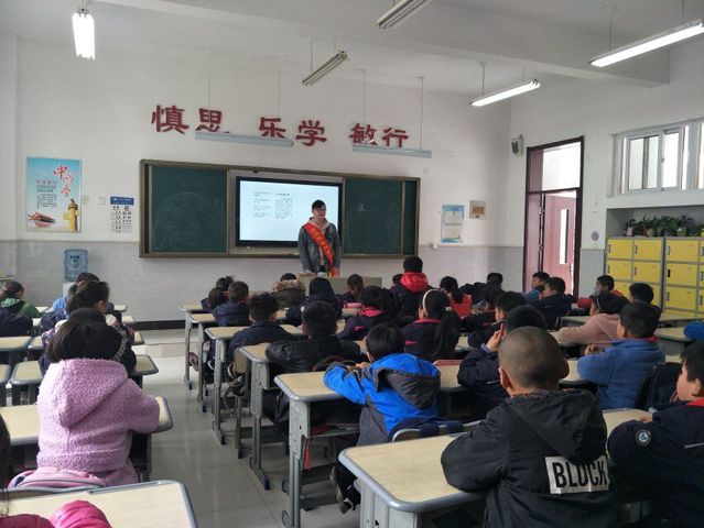 在班主任的带领下,志愿者们有条不紊的开展教学准备工作。利用生动形象的PPT进行教学大大提高了同学们听课的兴趣。在与同学们的互动环节之中,志愿者们巧妙的利用雷锋精神进行设问,不仅与活动主题相符合调动了同学们的积极性。在本次活动中,同学们积极发言,全身心的投入课堂中,这不仅是因为志愿者们生动形象的讲解,更是因为雷锋精神对同学们的影响早已是根深蒂固达到了无人不知无人不晓的程度。志愿者们通过讲解雷锋的优秀事迹和有趣的小故事教育、引导同学们负责自己的事、关心别人的事。