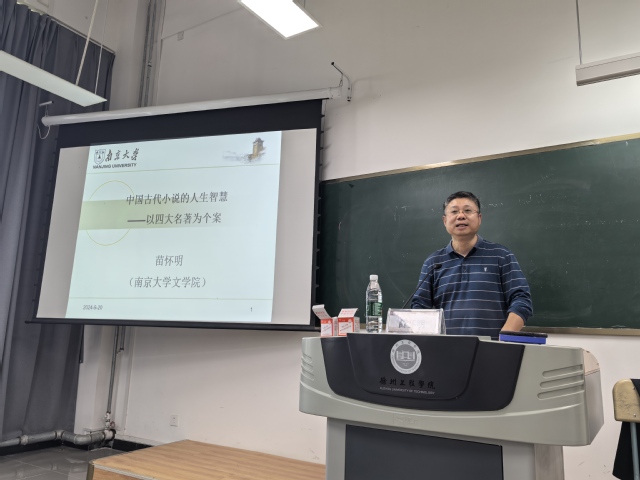 923日下午,南京大学文学院博士生导师苗怀明教授应邀在敬中楼101教室为我院师生做了题为“中国古代小说的人生智慧”的学术讲座。讲座由院长马衍教授主持,学院教师和汉语言文学专业学生近200人聆听了讲座。