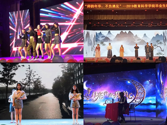 伴随着辉宏而嘹亮的歌声,晚会在合唱《国家》和《我和我的祖国》中拉开序幕。耿中华书记为毕业生送上祝福,并对毕业生提出要志存高远、不断学习、立德树人、不忘母校等殷切希望。晚会以“师韵年华,不负遇见”为主题,分为三大板块给同学们带来了音乐、舞蹈、朗诵等14个节目的精彩表演。朗诵《格物致知》、《写给未来的你》、《坚韧之美》慷慨既然、深情款款;舞蹈《怦然心动》、《dalladalla》活力四射、绚丽多彩;歌曲《请回答2019》、《不说再见》优美动听、催人泪下;创意节目《小人舞》、《同学聚会》创意十足,令人捧腹。晚会中间还穿插了送别视频,来自院领导、老师、辅导员、学弟学妹和宿管阿姨等人为毕业生送上了毕业祝福,一声注意身体,常回家看看让许多同学热泪盈眶。