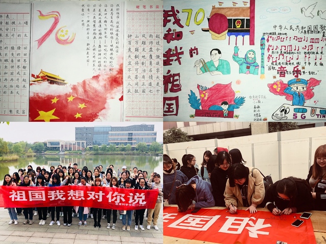 本次 “不忘初心、牢记使命”主题团日活动在17、18、19级的各个班级团支部展开,面向每一位团员。活动形式丰富多样。活动开始前各个班级团支部都精心准备了精美的PPT和呈现效果良好的板书,有的团支部采用团支书讲团课的形式,弘扬爱国主义情怀;有的团支部组织观看以“爱国精神”为题材的电影以及合唱《我和我的祖国》歌曲的形式,向同学们再现新中国成立前夕令人热血沸腾的历史;有的团支部采用户外拓展的形式,同学们在鲜红的横幅上写满爱国的赞歌,一字一句都是大家对祖国深沉的依恋与敬佩;还有的支部开展征文、书法、剪纸以及绘画作品,都凝聚着大家对祖国浓烈的热爱。各个支部团日活动紧扣主题,内容充实,积极向上,传达了爱国情怀,体现了“不忘初心、牢记使命”的主题思想。